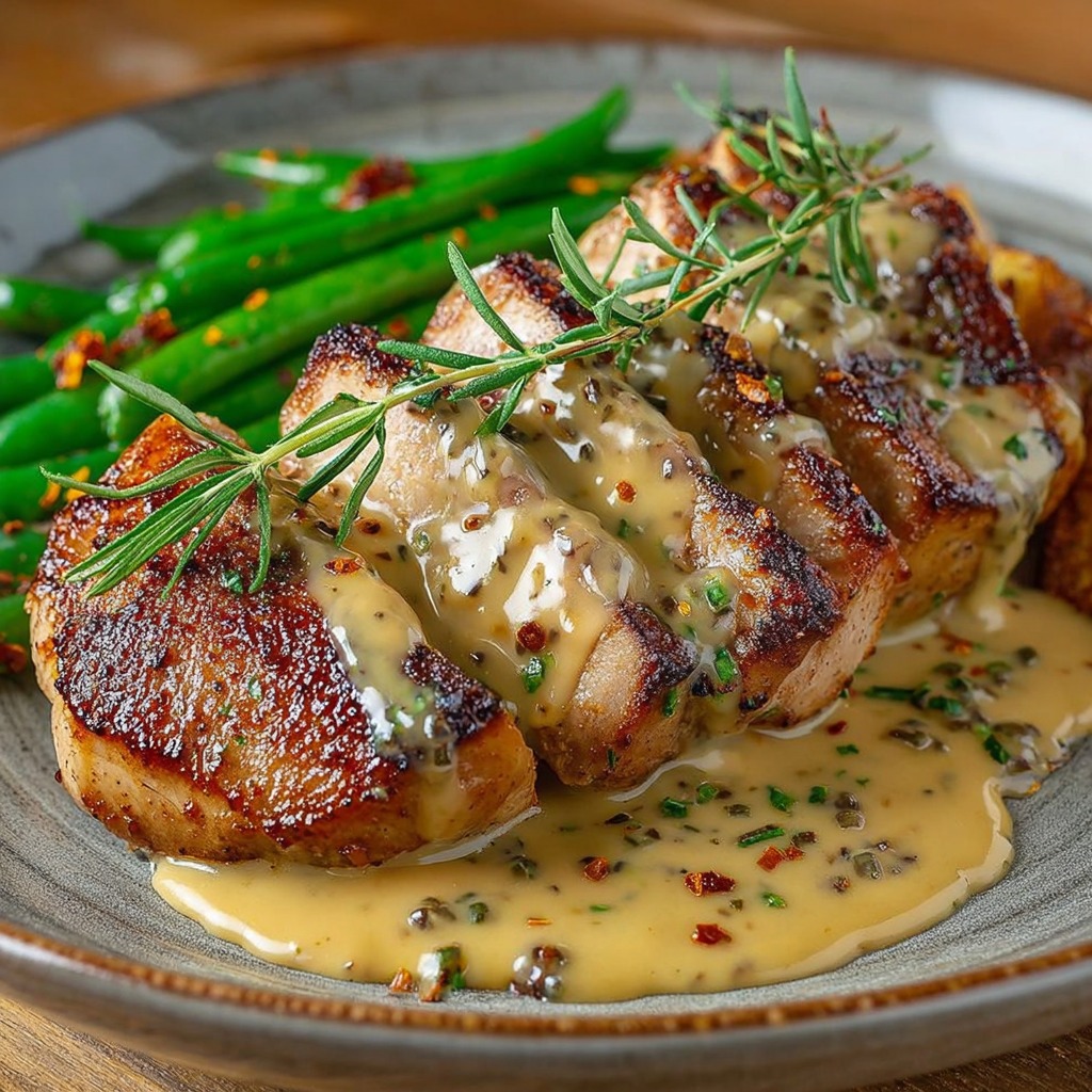 Escalopes de Porc Nappées d’une Sauce Moutarde Crémeuse