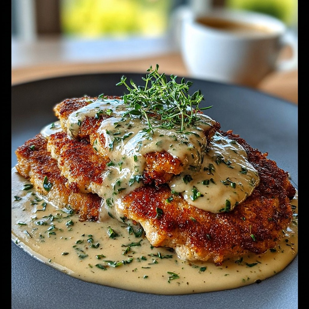 Disposer les escalopes sur un plat de service ou dans des assiettes individuelles et napper généreusement de sauce savoyarde. Parsemer de persil frais ou d’herbes aromatiques pour la couleur et le parfum. La combinaison de la viande dorée et de la sauce crémeuse aux champignons et au fromage rend le plat visuellement attrayant et appétissant, invitant à la dégustation. Chaque bouchée offre une alliance parfaite entre tendreté, onctuosité et saveurs riches.