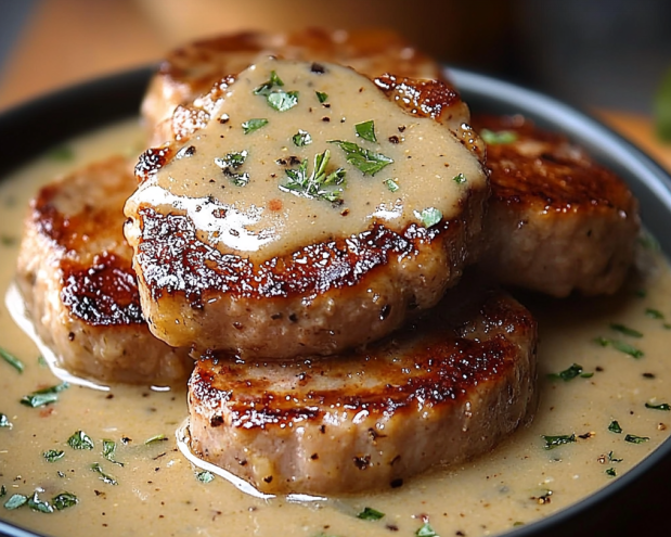 Servez les escalopes nappées de la sauce savoyarde, avec un peu de ciboulette ou de persil frais pour ajouter une touche de fraîcheur.