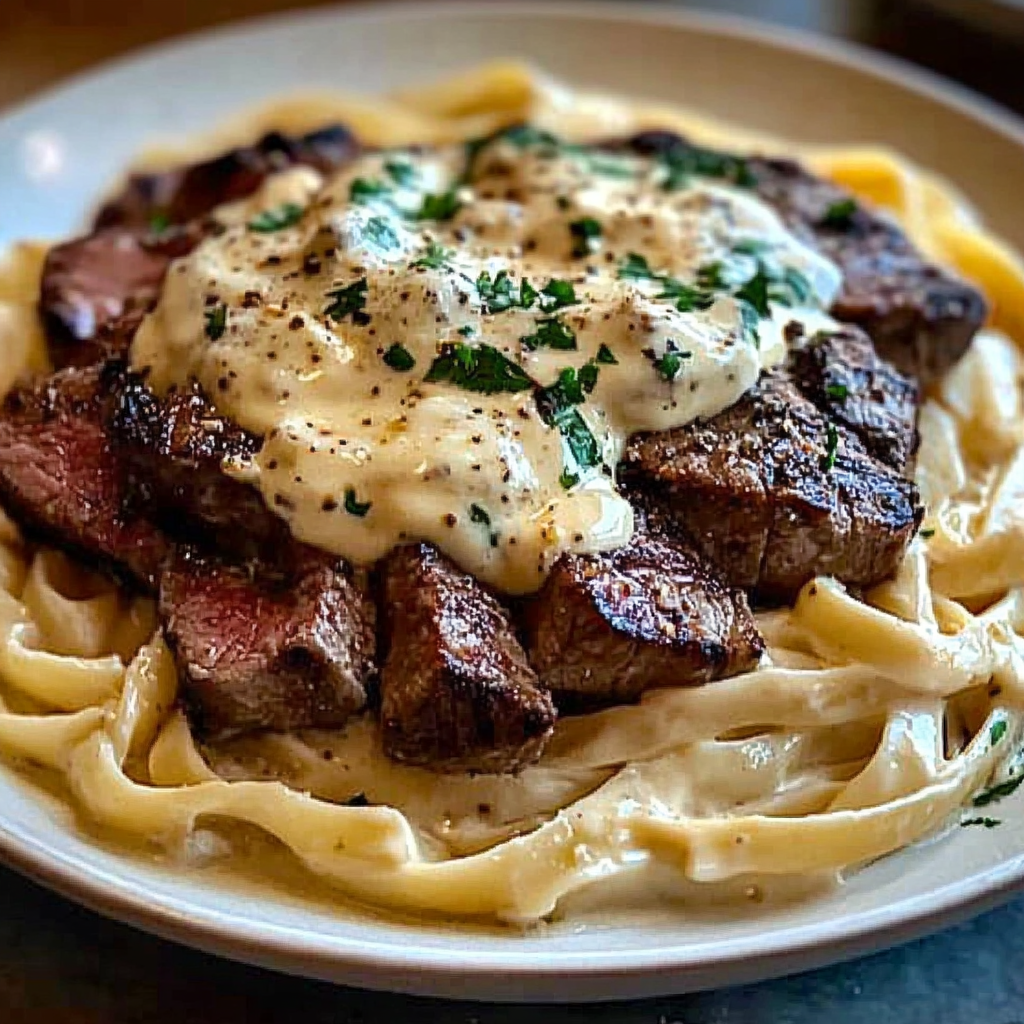 Ce plat réunit tous les éléments pour un dîner mémorable : la richesse de la sauce Alfredo, l’onctuosité du Gorgonzola, la tendreté du steak et l’aspect réconfortant des fettuccine. C’est une combinaison parfaite de saveurs crémeuses et savoureuses qui satisfera les amateurs de pâtes, de viande et de fromage.