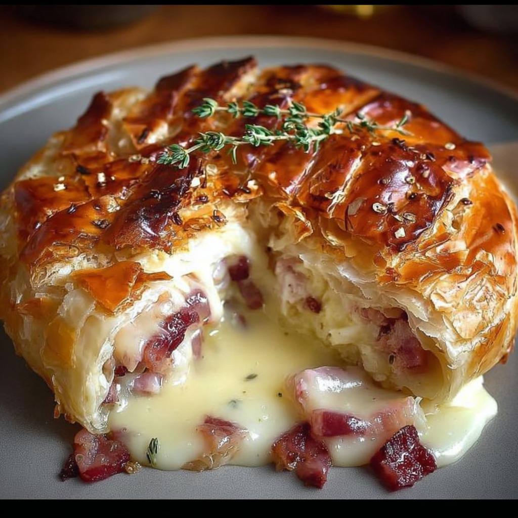 Ce feuilleté illustre l’esprit de la cuisine française : simple mais généreux, accessible mais raffiné. C’est un plat parfait pour un dîner en famille ou entre amis, facile à préparer mais qui fait toujours son effet. Sa texture croustillante contraste avec la douceur fondante du camembert, tandis que les lardons apportent une note fumée et salée particulièrement savoureuse.