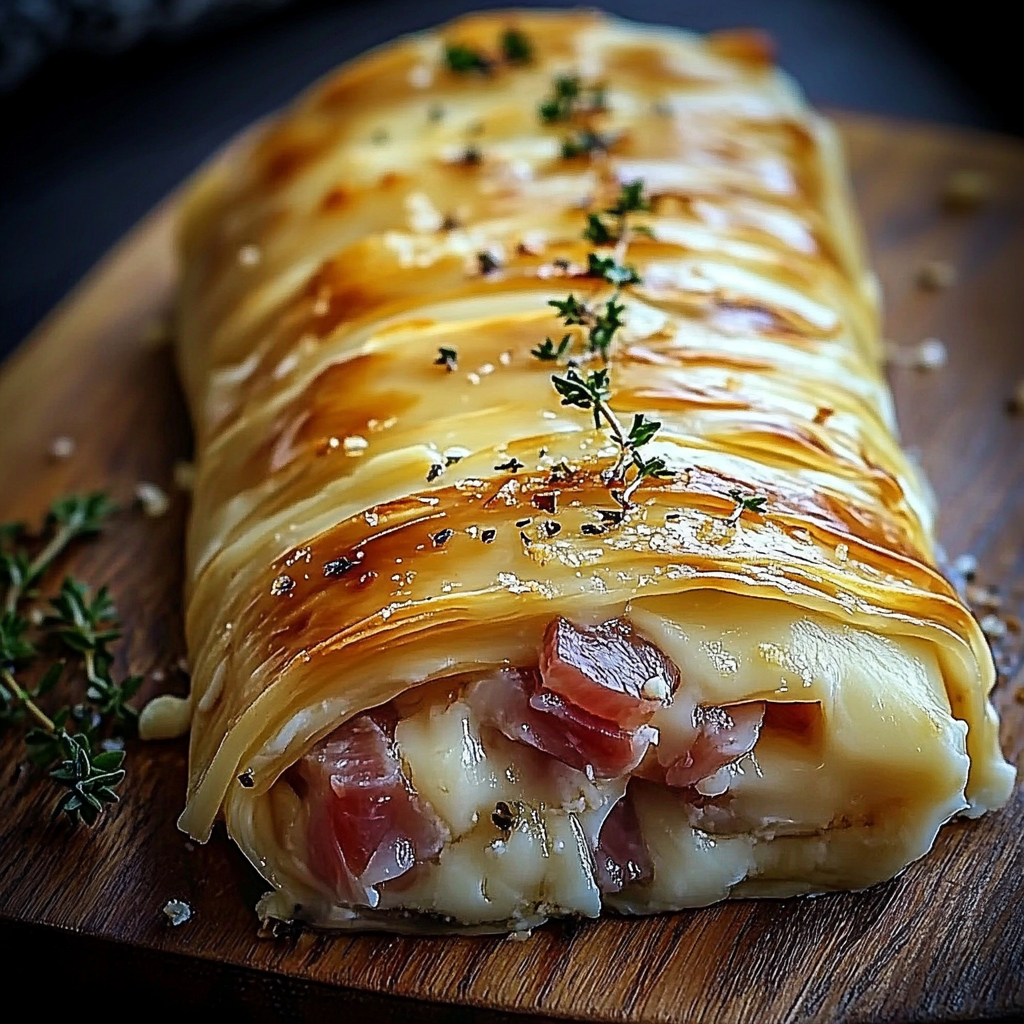 Un feuilleté qui réunit le meilleur de la cuisine savoyarde et de la simplicité, c’est exactement ce que vous obtenez avec cette recette ! Le fromage fondant, le jambon cru savoureux et la pâte feuilletée croustillante feront de ce plat un vrai succès. Bonne dégustation !