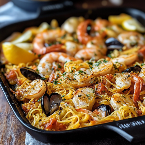 Ce plat est parfait pour les repas en famille ou entre amis. Sa simplicité, combinée à la richesse de ses saveurs, en fait un choix idéal pour un dîner estival ou un déjeuner en terrasse. Vous pouvez même adapter la recette selon vos préférences, en changeant les types de fruits de mer ou en ajoutant des légumes de saison.
