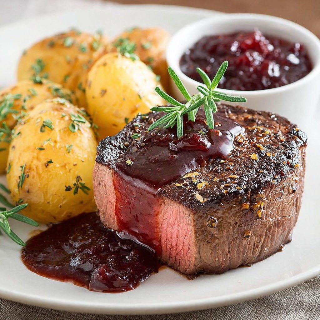 Le filet de bœuf avec sauce vin rouge et pommes de terre est un plat élégant et classique qui met en valeur la qualité de la viande et la finesse des saveurs françaises. Sa combinaison de textures, de couleurs et d’arômes en fait une préparation raffinée, équilibrée et festive, pa