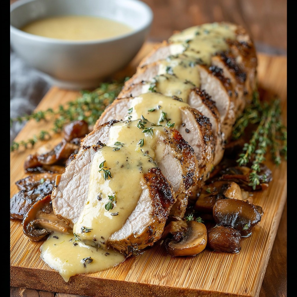 Filet de porc juteux à la moutarde de Dijon avec sauce crémeuse au thym