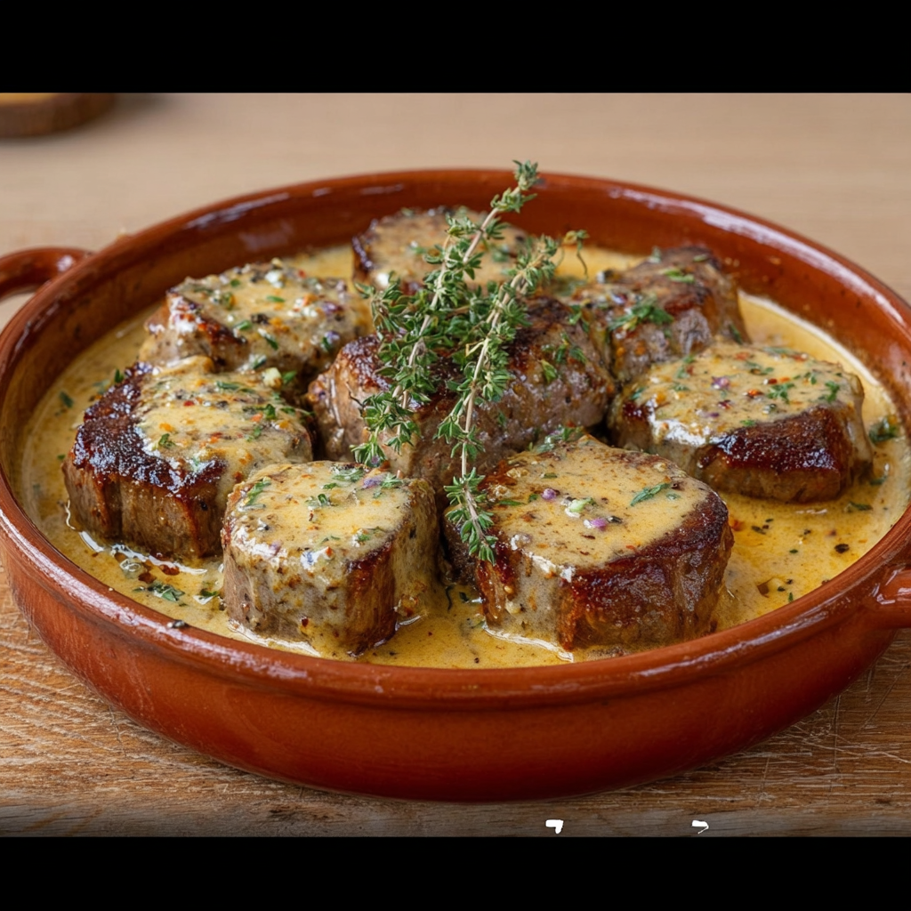 Le filet mignon à la moutarde, miel et crème fraîche est un plat qui combine tendreté de la viande, douceur du miel et onctuosité de la crème, pour un résultat fondant et riche en saveurs. Facile à préparer, il impressionne à table par son goût raffiné et sa texture moelleuse.