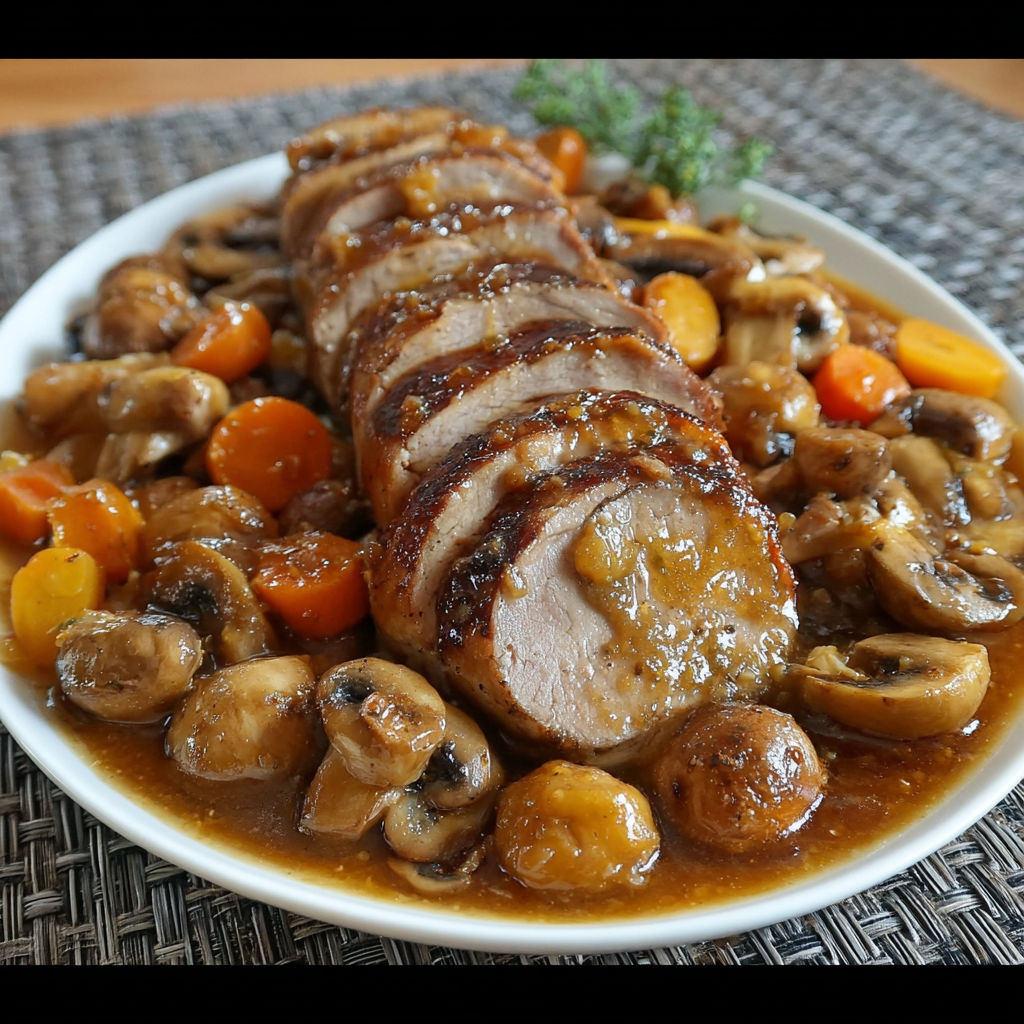 Filet Mignon de Porc aux Champignons et Carottes avec Sauce Brune