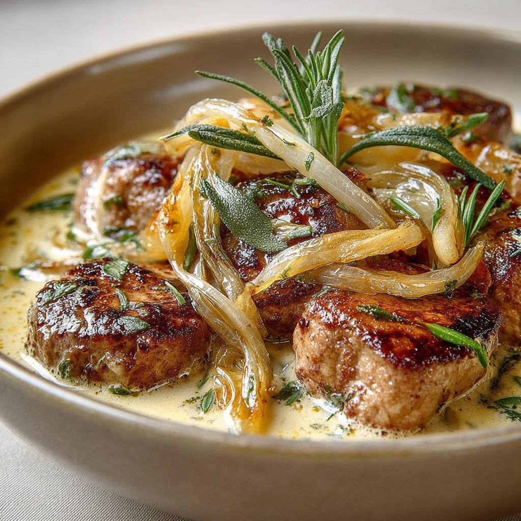 Ce plat de filet mignon de porc aux oignons caramélisés incarne l’harmonie entre sucré et salé, tendreté et onctuosité. Facile à préparer, il offre un résultat raffiné et réconfortant. La combinaison des oignons caramélisés, du filet mignon doré et de la sauce crémeuse crée une expérience gastronomique complète, idéale pour toutes les occasions, du repas familial au dîner festif. Un plat chaleureux, savoureux et élégant