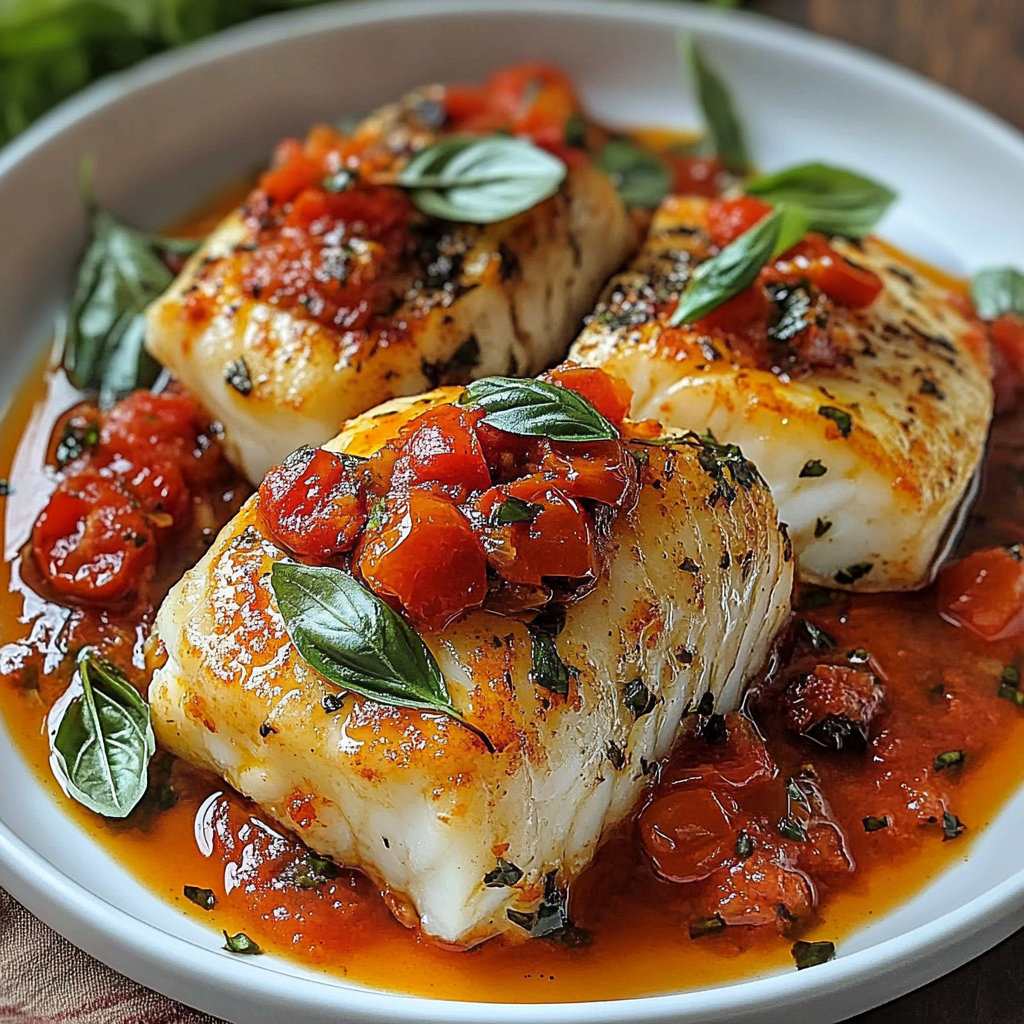 Filets de Morue Méditerranéenne Sautés dans une Sauce Tomate-Basilic