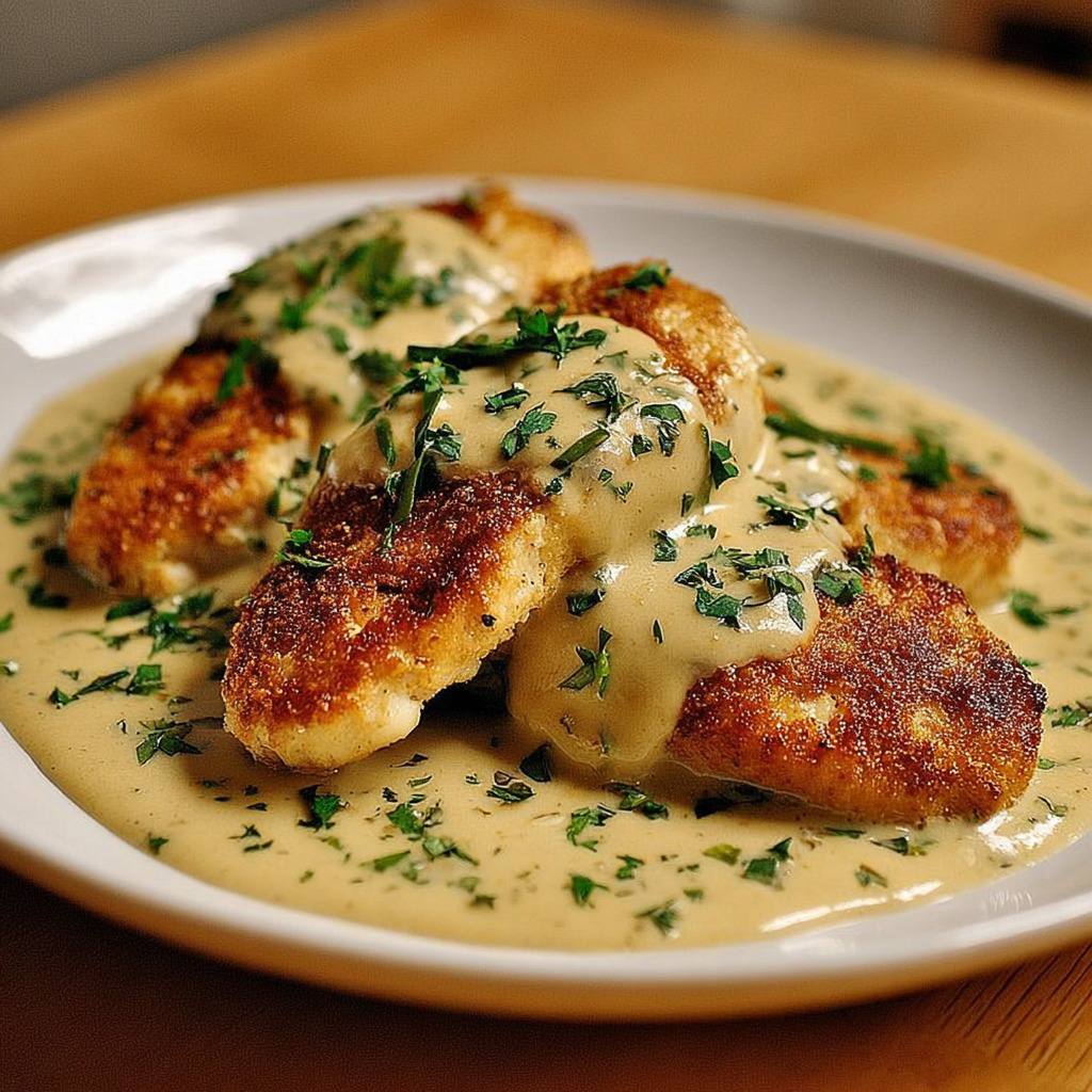 La préparation de ce plat commence par la sélection des filets de poulet. Leur qualité influence directement le résultat final. Les morceaux doivent être fermes, légèrement rosés et sans excès d’humidité. Avant la cuisson, on les assaisonne avec du sel, du poivre, du paprika et des herbes. Cet assaisonnement simple apporte une base aromatique équilibrée qui se mariera avec la sauce crémeuse.