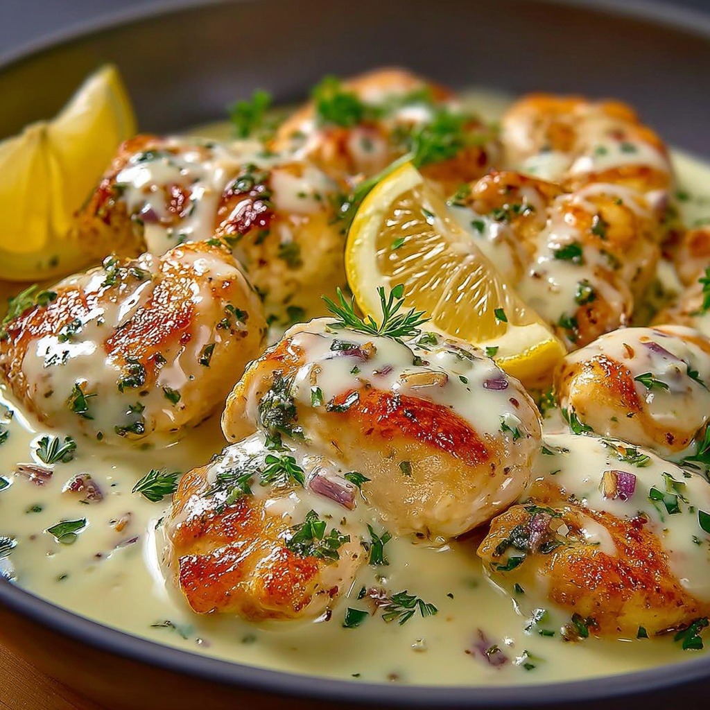 Les filets de poulet tendres avec une sauce crème citronnée à l’ail sont une célébration de la finesse et de la fraîcheur. Ce plat met à l’honneur la pureté des ingrédients et la maîtrise des équilibres entre acidité, douceur et onctuosité. Facile à préparer, raffiné sans être prétentieux, il séduit par son élégance naturelle. Servi chaud, accompagné d’un vin blanc et de légumes de saison, il incarne l’essence même d’une cuisine à l