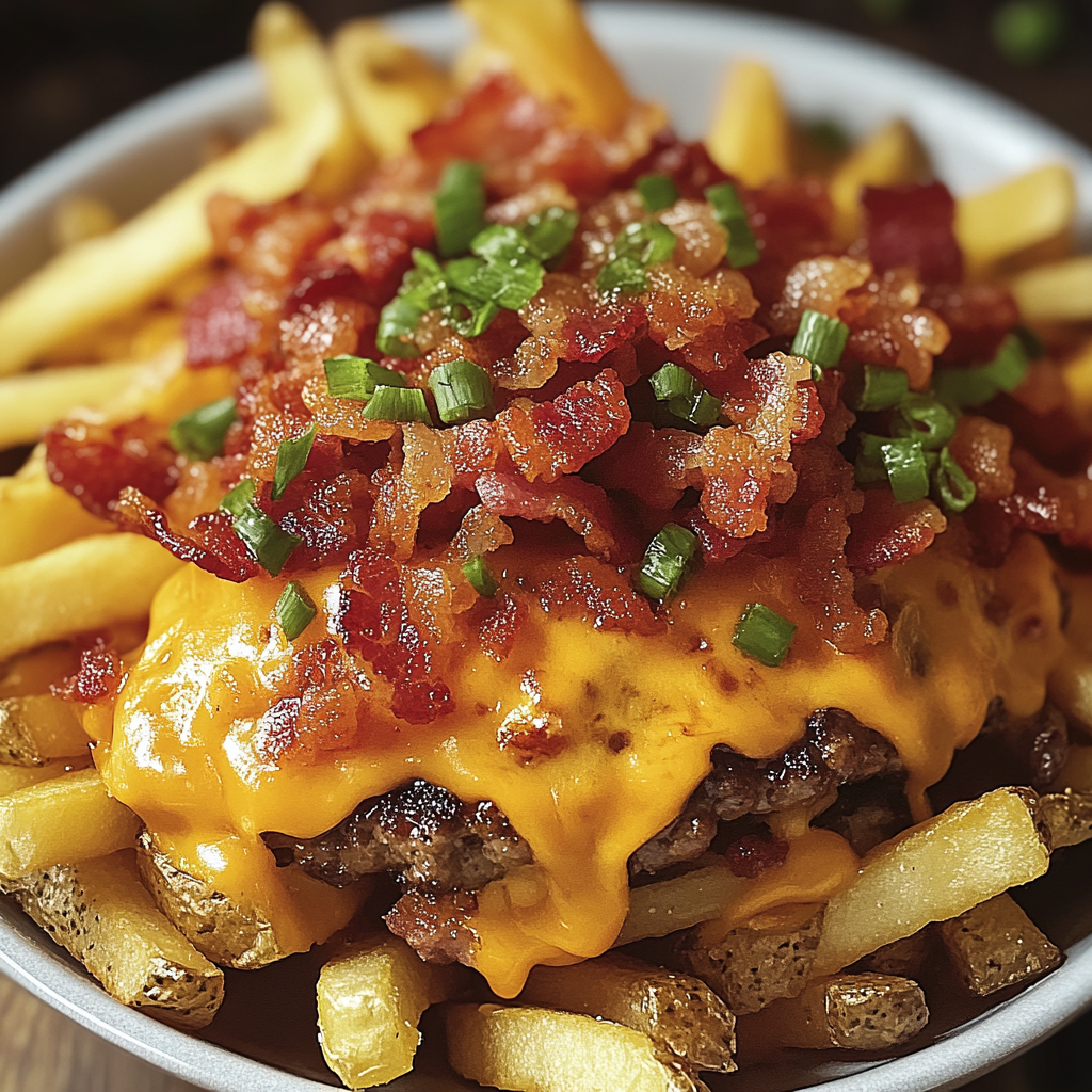 Les frites cheeseburger bacon chargées sont un pur délice pour les amateurs de plats réconfortants et généreux. Ce mélange gourmand de frites croustillantes, de bœuf juteux, de fromage fondant et de bacon croquant en fait un plat irrésistible à partager entre amis ou en famille, ou même à savourer seul pour se faire plaisir.