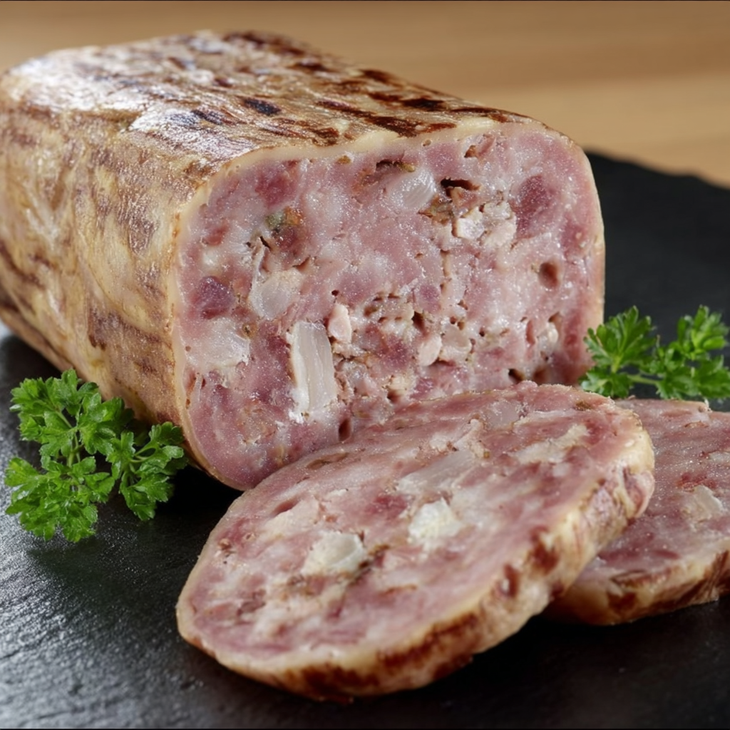 Le fromage de tête est un grand classique de la charcuterie paysanne française. Longtemps préparé dans les fermes après l’abattage du cochon, il permettait de valoriser chaque morceau en obtenant une terrine généreuse, fondante et parfumée. Sa gelée naturelle, riche en collagène, enrobe délicatement les viandes pour offrir une texture à la fois ferme et moelleuse, au goût authentique et rustique.