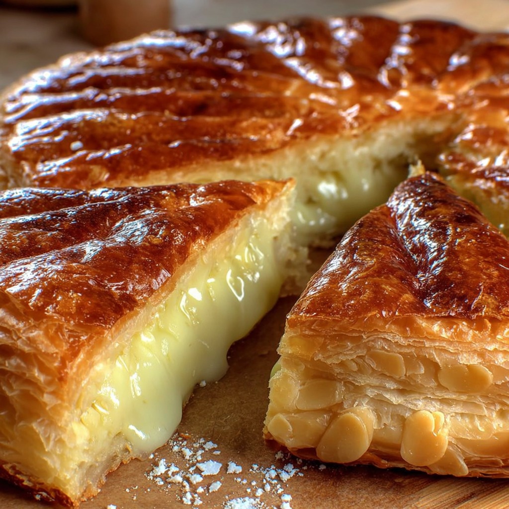 La pâte feuilletée constitue la structure de la galette. Elle doit être croustillante à l’extérieur et légère à l’intérieur. Une pâte feuilletée pur beurre est indispensable pour obtenir un feuilletage bien développé et une saveur riche. La qualité de la pâte influence directement le résultat final car elle encadre la garniture et apporte le contraste de texture essentiel à la dégustation.