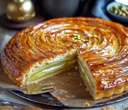 - Version glacée : Pour une version plus moderne, vous pouvez essayer de servir la galette avec une boule de glace à la pistache ou une crème chantilly maison pour ajouter encore plus de gourmandise.