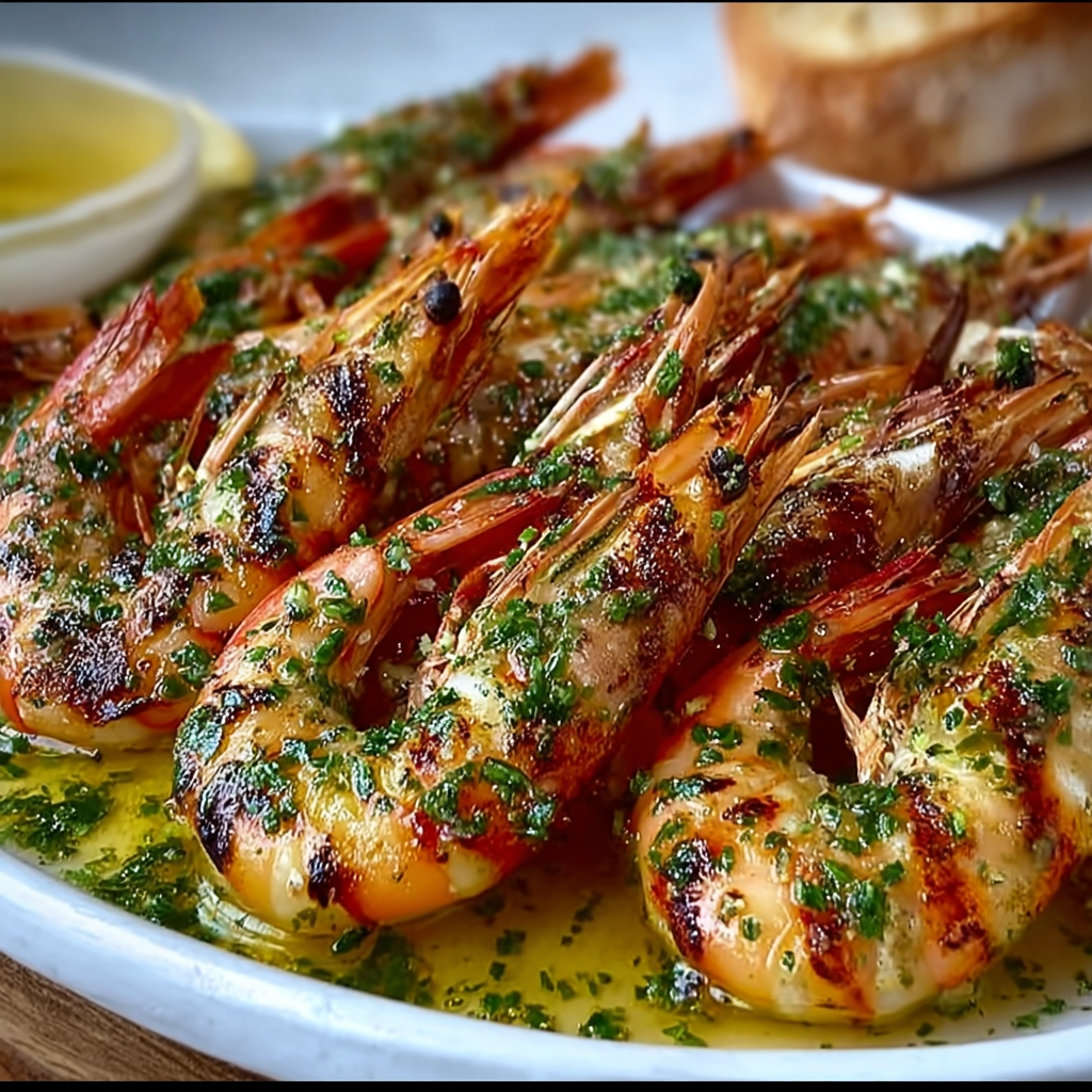 Gambas grillées au beurre d’ail et persil