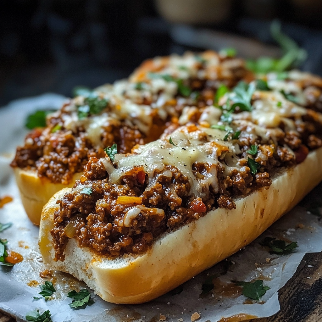A delicious twist on the classic Sloppy Joe, served on garlic buttered Italian bread and topped with melted cheese!