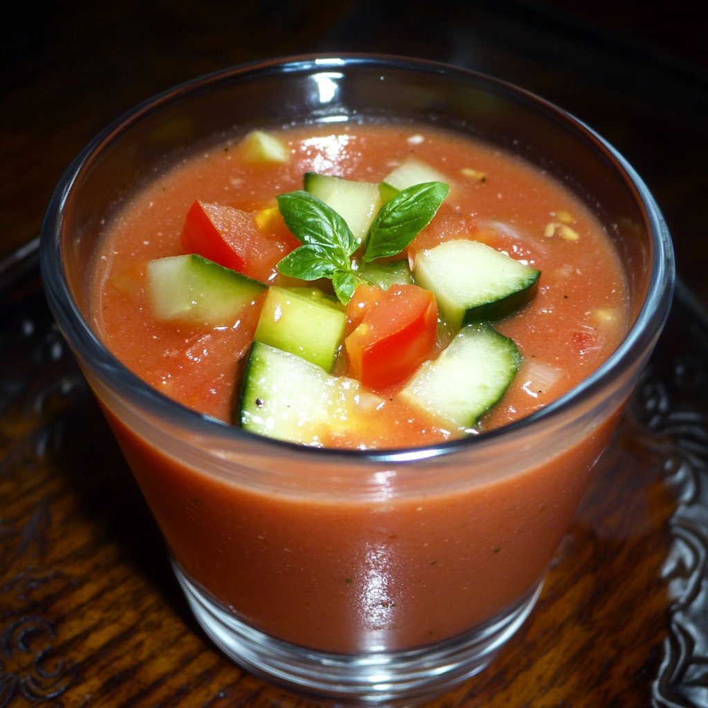 Soupe froide rafraîchissante et colorée, idéale pour un repas d’été léger et vitaminé.