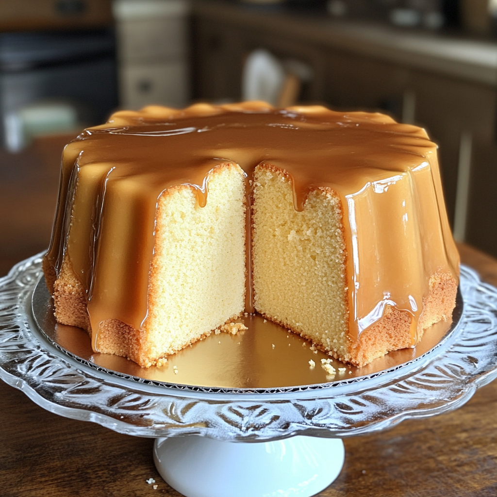 Une fois la glace au caramel prête, retirez la casserole du feu et laissez refroidir jusqu’à ce que la consistance épaississe. Ensuite, versez doucement la glace au caramel sur le gâteau refroidi. Veillez à bien couvrir toute la surface du gâteau pour un maximum de gourmandise.