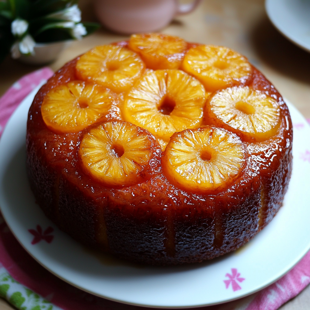 Le gâteau à l’ananas renversé, ou “pineapple upside-down cake”, trouve ses origines aux États-Unis, où il devient populaire dans les années 1920 grâce à la promotion des ananas en conserve par la marque Dole. En France, il est adopté dans les années 60-70 comme dessert de fête. On le redécouvre aujourd’hui dans les brunchs et les desserts réconfortants.