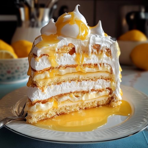 Ce gâteau au citron et meringue est le choix parfait pour toutes les occasions, qu’il s’agisse d’un dîner en famille ou d’un événement spécial. Sa base légère, sa crème acidulée et sa meringue fondante offrent une combinaison unique qui plaira à tous. De plus, sa présentation élégante en fait un dessert qui attire autant les yeux que les papilles.