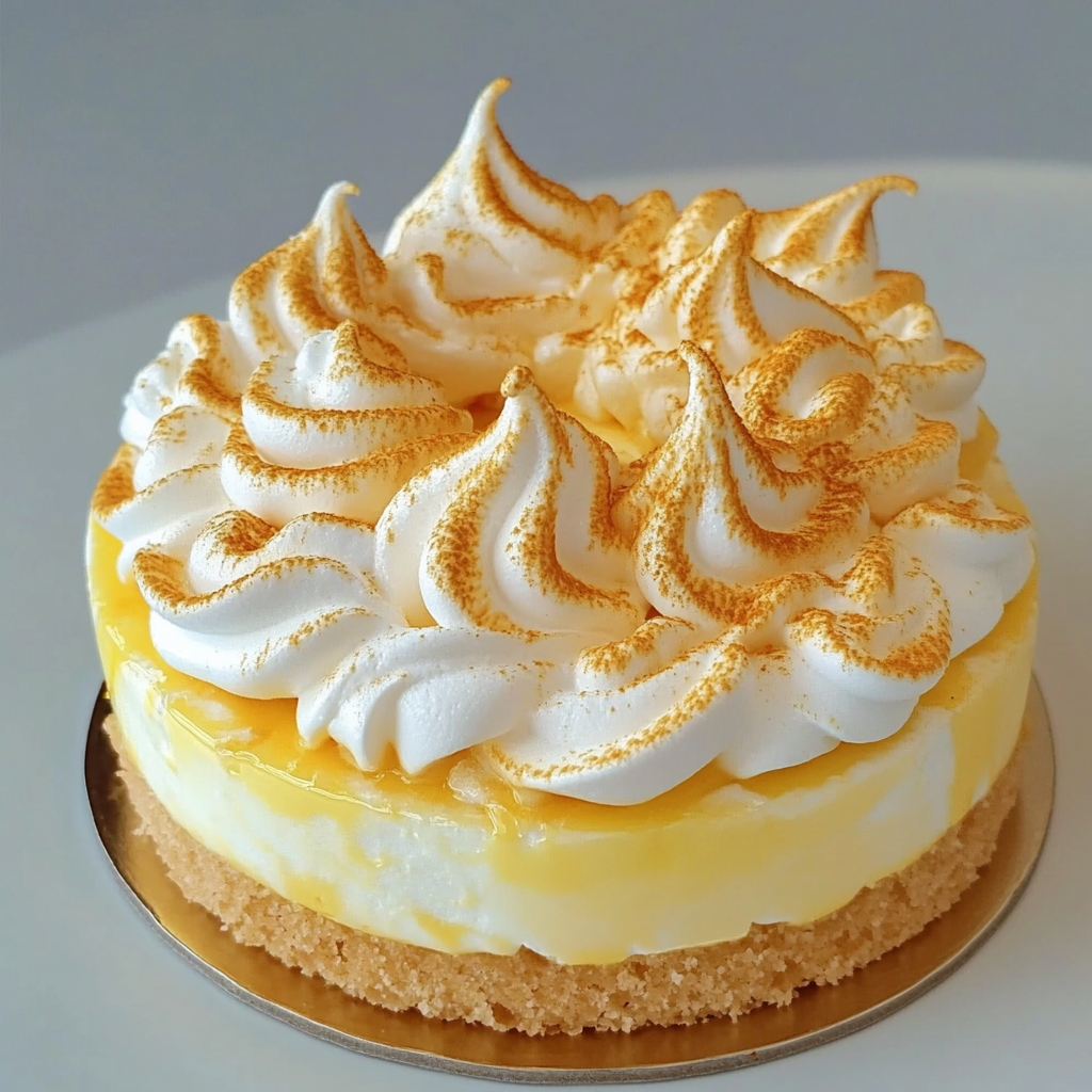 - Cuisson finale : Préchauffez le four à 180°C (350°F) et enfournez le gâteau pendant 5 à 7 minutes, jusqu’à ce que la meringue soit dorée.
