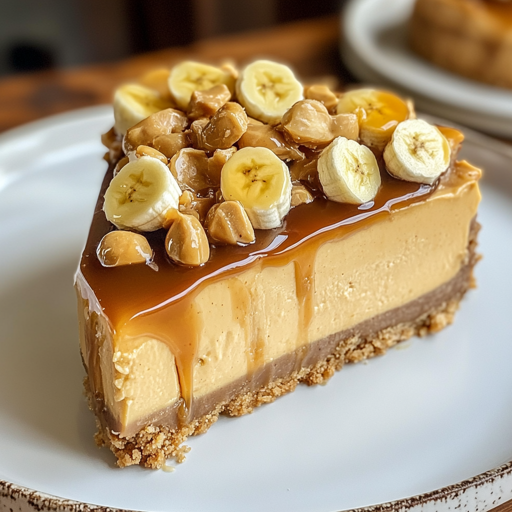 Savourez ce cheesecake onctueux, sucré et crémeux, parfait pour les amateurs de bananes et de caramel ! Ce gâteau au fromage allie la douceur des bananes à la richesse du beurre de cacahuète, le tout sur une croûte croustillante de biscuits Graham. Que vous le serviez lors d’une fête ou comme dessert réconfortant, il séduira à coup sûr vos convives.