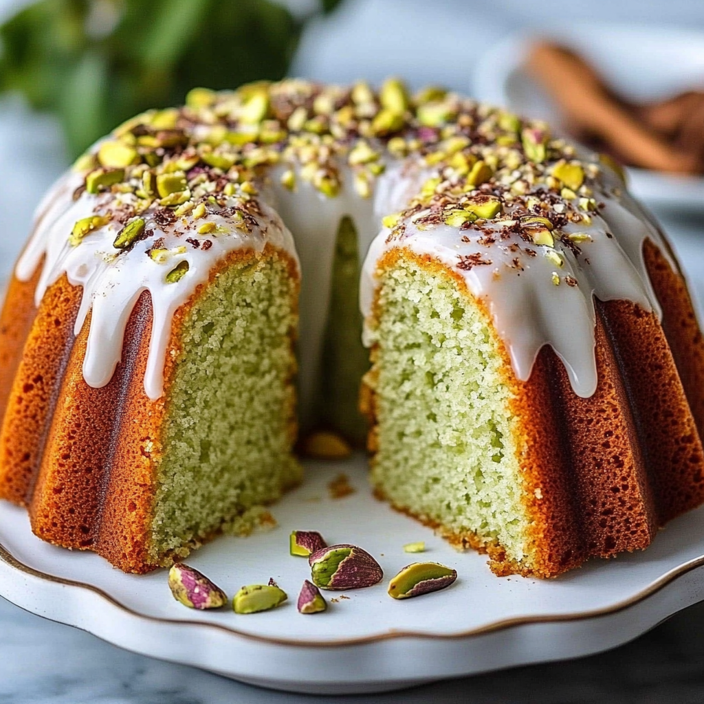 Gâteau Bundt Pistache & Glaçage Vanille – Élégance, douceur et moelleux irrésistible