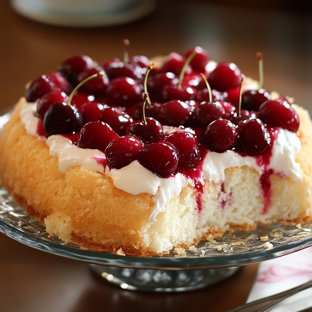 Astuce : Si vous souhaitez une version plus gourmande, vous pouvez imbiber légèrement le gâteau des anges avec un sirop léger ou un peu de jus des cerises pour ajouter encore plus de saveur.