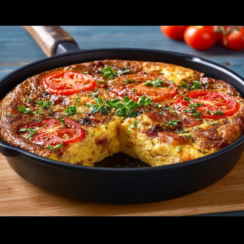 Le gâteau d’omelette aux tomates et lardons est une recette simple, rapide et très savoureuse qui transforme une omelette classique en un plat complet et généreux. Cuit au four, ce gâteau salé offre une texture moelleuse et légèrement gratinée qui plaît autant aux adultes qu’aux enfants.