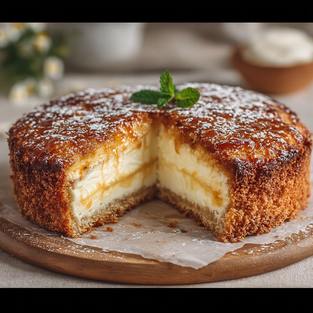 Ce dessert est parfait pour les grandes occasions comme les repas de famille, les fêtes, les anniversaires ou simplement pour se faire plaisir avec une douceur maison pleine de charme. Sa texture unique séduit immédiatement : une base tendre, une garniture crémeuse et une finition dorée qui le rendent irrésistible.