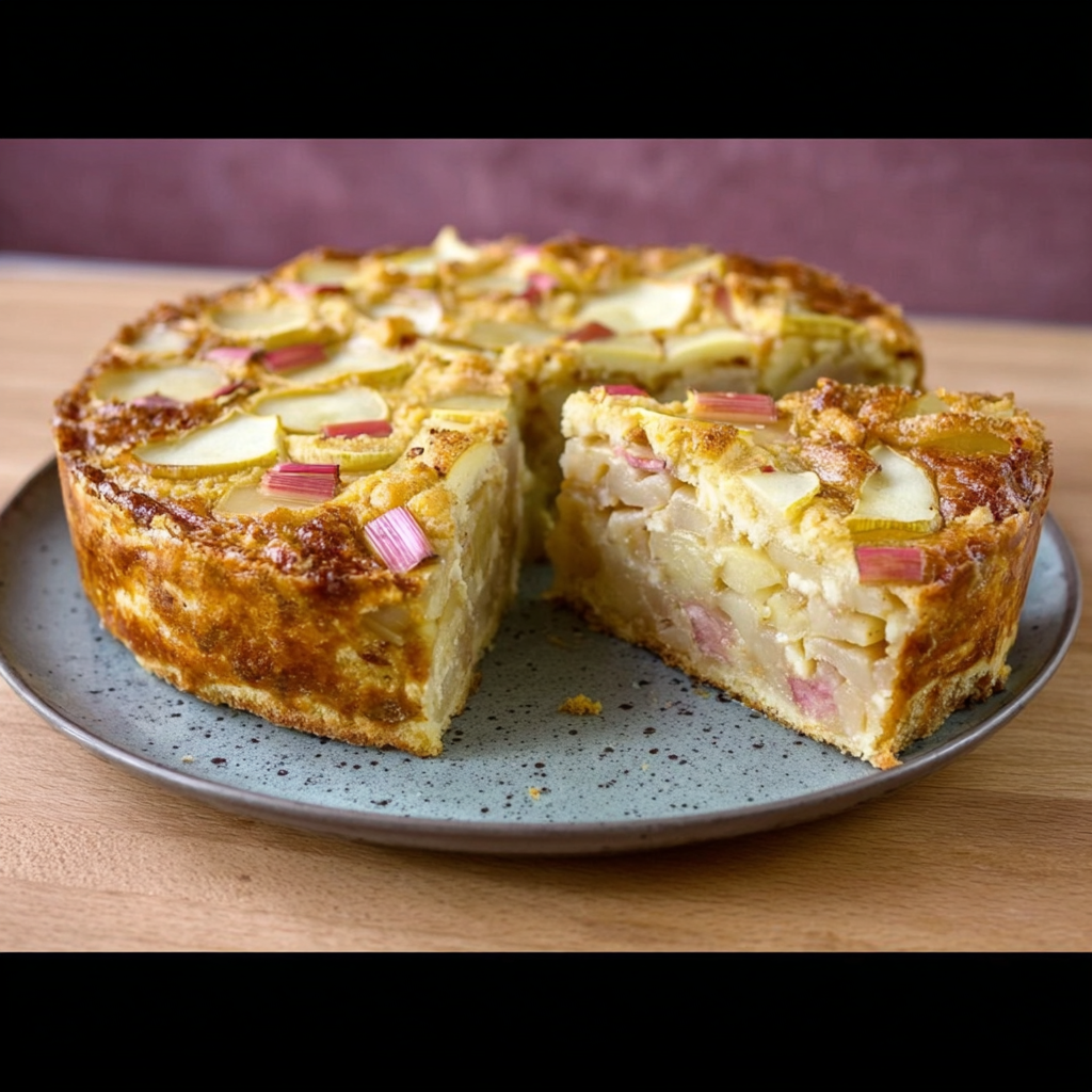 Historiquement, la rhubarbe était utilisée non seulement pour sa saveur mais aussi pour ses vertus digestives. Associée à la pomme, elle adoucit son acidité et rend le dessert accessible à tous. C’est un gâteau parfait pour les familles, car il combine goût, nutrition et simplicité.