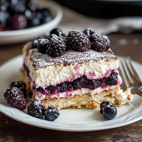 Gâteau Poke Tiramisu aux Mûres : Un Délice Italien Revisité