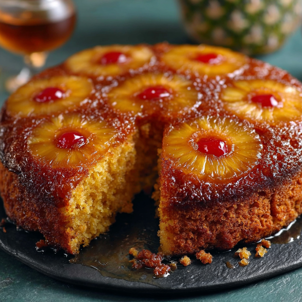 Derrière sa simplicité apparente se cache pourtant un véritable équilibre de textures et de saveurs : un caramel doré légèrement croustillant, des rondelles d’ananas fondantes et juteuses, et une pâte moelleuse qui s’imprègne délicatement du jus du fruit pendant la cuisson.