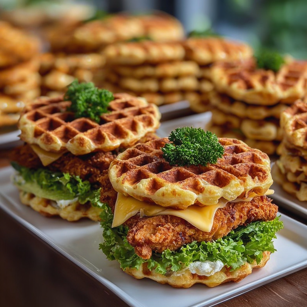 Les gaufres salées au poulet pané sont une alternative originale aux classiques sandwiches ou burgers. Elles offrent un équilibre parfait entre croustillant, fondant et fraîcheur, grâce au poulet pané doré, au fromage fondant et à la salade croquante. Faciles à préparer, elles plaisent aussi bien aux enfants qu’aux adultes et peuvent être servies en plat principal, en brunch ou même en apéritif dînatoire sous forme de mini-gaufres.
