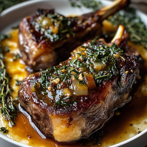 Pour servir, disposez les gigots d’agneau braisés sur un plat de service et nappez-les de la sauce réduite. Ce plat se marie parfaitement avec des légumes rôtis, de la purée de pommes de terre crémeuse ou des pommes de terre gratinées.
