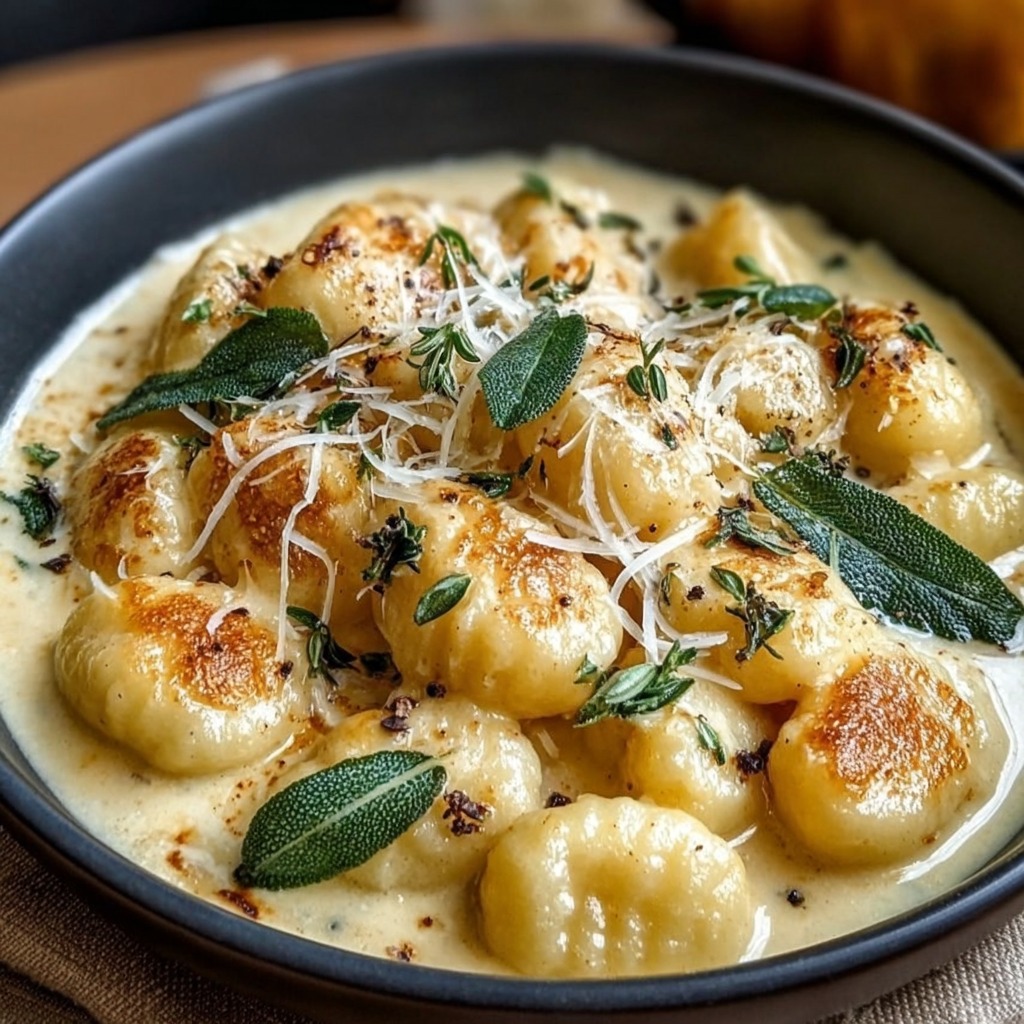 Les gnocchi à la crème de parmesan et à la sauge illustrent l’art de transformer des ingrédients simples en un plat raffiné et savoureux, où chaque él