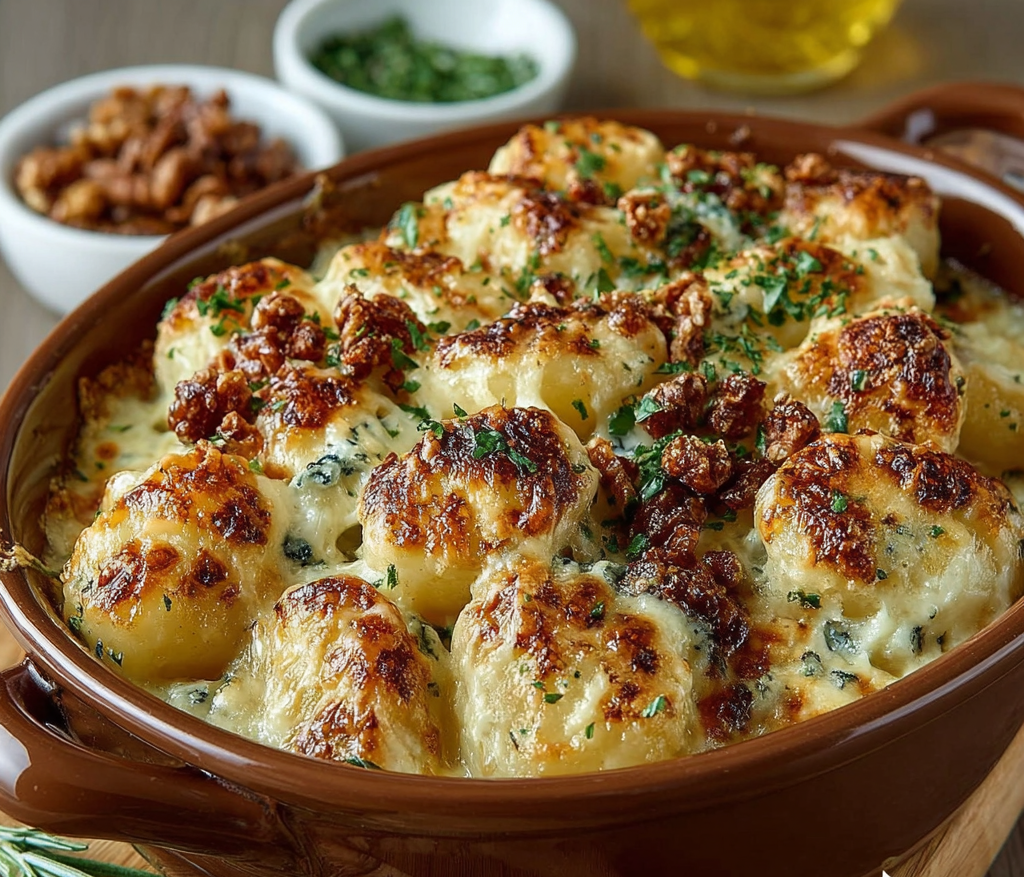 Nom du plat : Gnocchis gratinés au roquefort et au miel