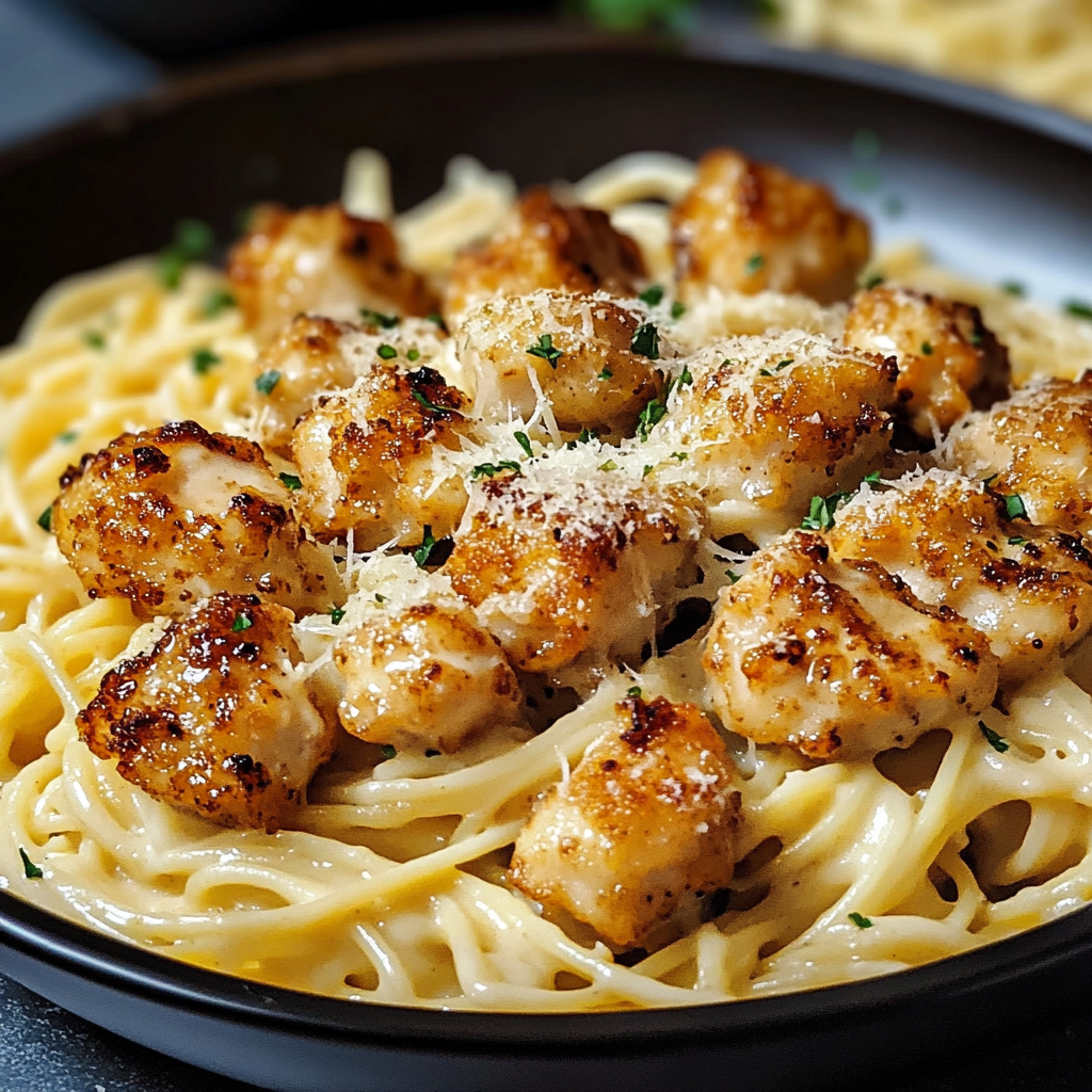 Le Golden Garlic Chicken Bites sur Pâtes Crémeuses au Parmesan est une recette incontournable si vous cherchez à impressionner avec un plat simple, savoureux et rapide à préparer. Que ce soit pour un dîner de semaine ou pour recevoir des amis, cette recette a tout pour plaire. Avec quelques ingrédients simples et des étapes faciles à suivre, vous obtiendrez un repas copieux qui réchauffera le cœur de toute votre tablée.