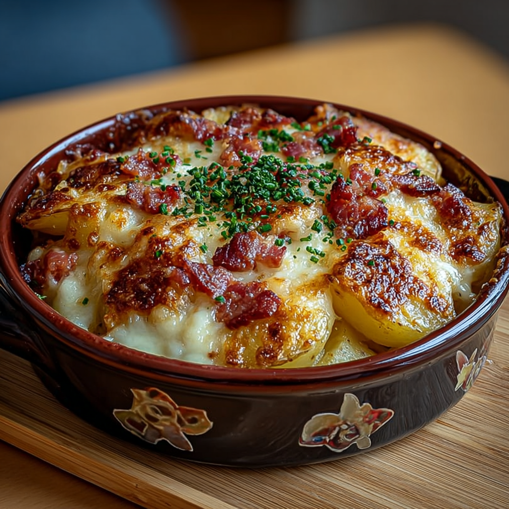 Ce gratin se distingue par son côté rustique et sa texture fondante. Chaque bouchée combine le moelleux des pommes de terre, le croustillant léger des lardons et l’onctuosité du fromage fondu, créant un plat qui séduit aussi bien les adultes que les adolescents. Ce plat peut se déguster seul ou accompagné d’une salade pour plus de fraîcheur, mais il est également parfait comme accompagnement d’une viande rôtie ou d’une volaille.