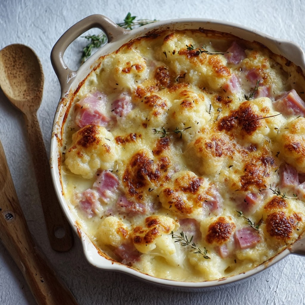 Gratin chou-fleur jambon gratiné