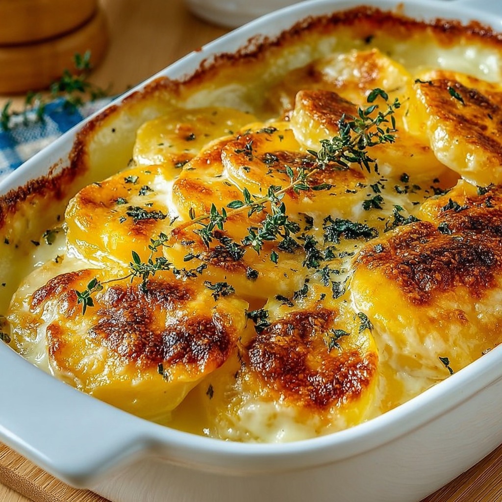 Utilisez une crème entière de bonne qualité et évitez la crème allégée, qui rendrait la texture moins onctueuse. Privilégiez une cuisson lente et douce pour que les pommes de terre s’imprègnent parfaitement du mélange de lait et de crème. Laissez toujours reposer le gratin avant de le servir, car c’est pendant ce temps que les couches se stabilisent et que la texture devient fondante à souhait.