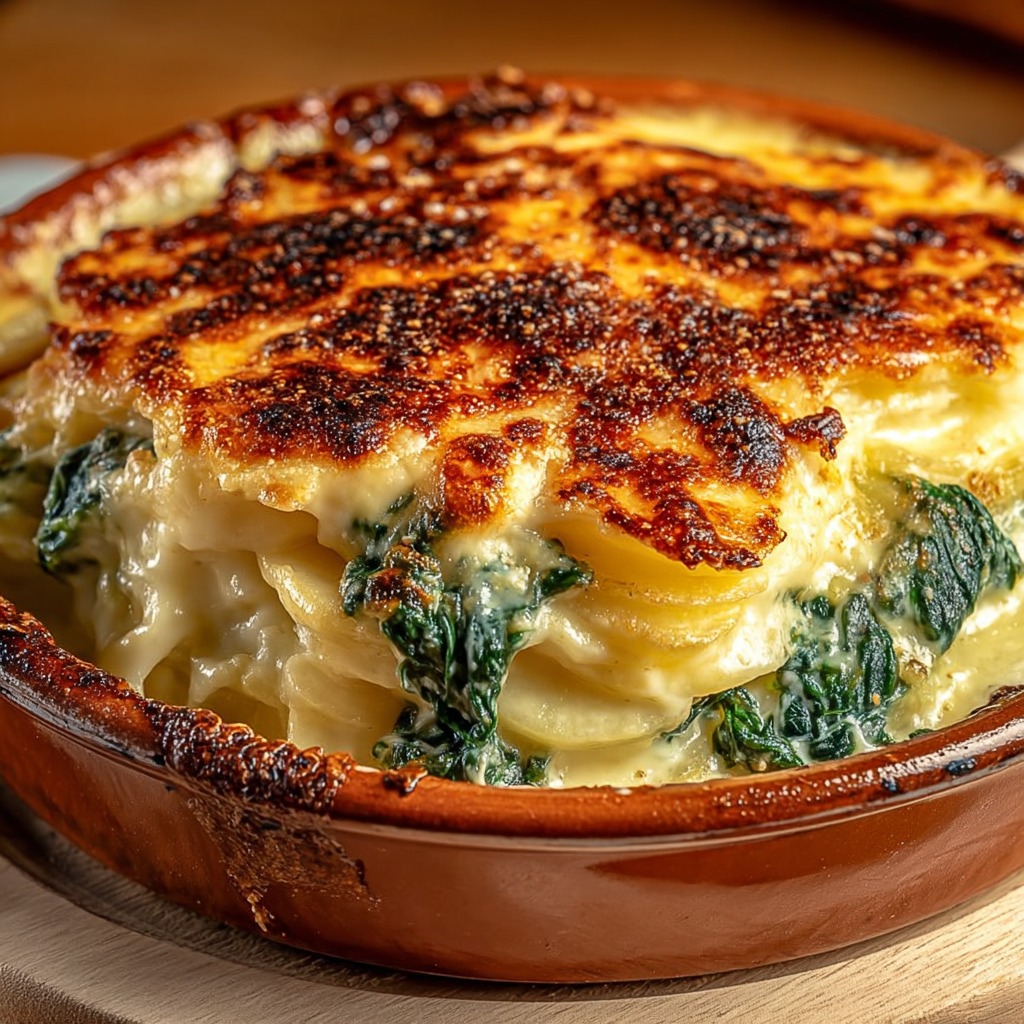 Gratin dauphinois aux épinards frais et comté affiné