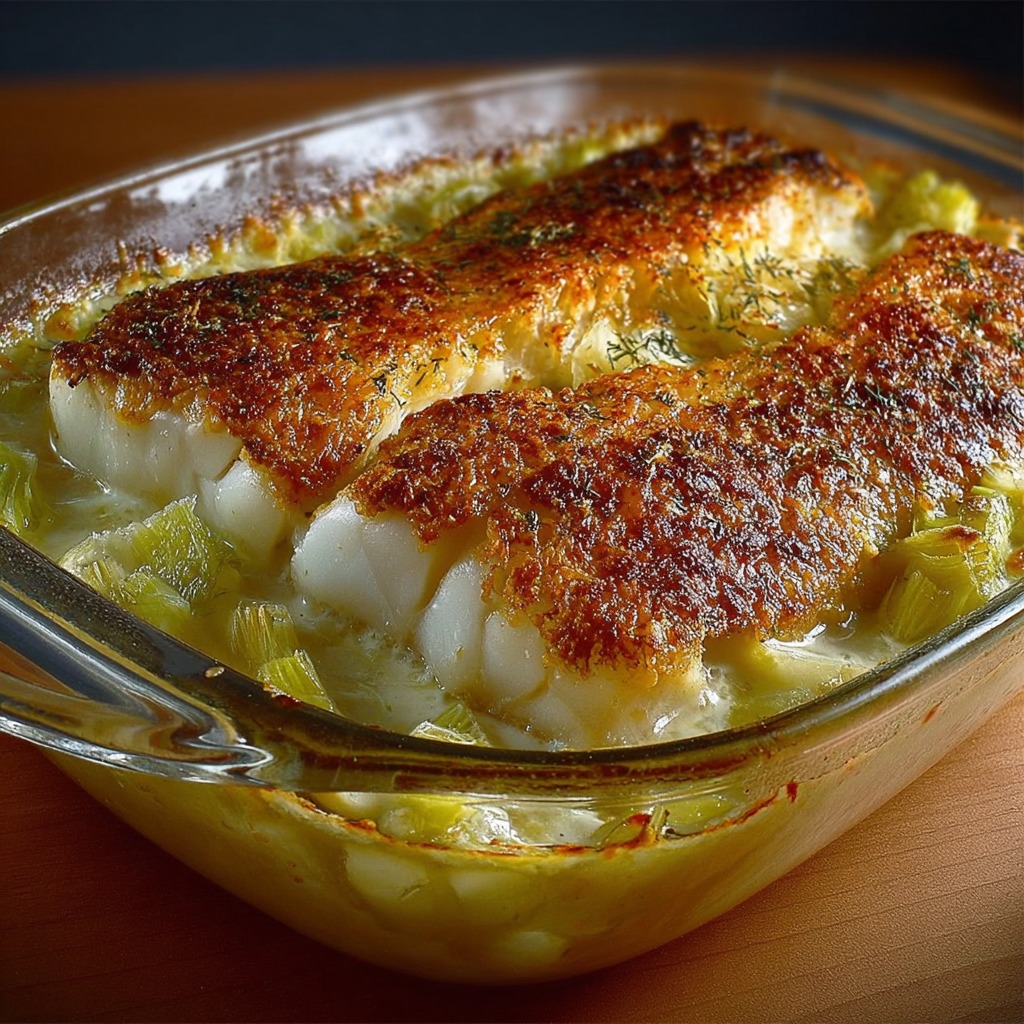 GRATIN DE CABILLAUD AUX POIREAUX ET CRÈME – FONDANT ET SAVOUREUX