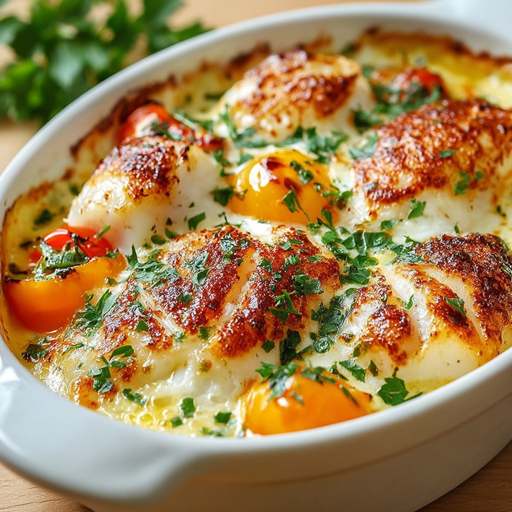 Le gratin de cabillaud aux poivrons et crème fromagère est une recette généreuse et réconfortante qui séduit par sa simplicité et sa richesse de saveurs. Il illustre parfaitement l’alliance entre un poisson délicat, des légumes colorés et une sauce onctueuse. Facile à préparer et apprécié par tous, ce gra