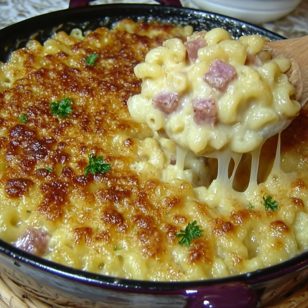Avec ses petites pâtes fondantes, son jambon savoureux et sa généreuse couche de fromage gratiné, il séduit autant les enfants que les adultes. La crème et les œufs apportent une texture onctueuse et légèrement soufflée qui transforme une recette basique en un véritable plat réconfortant.