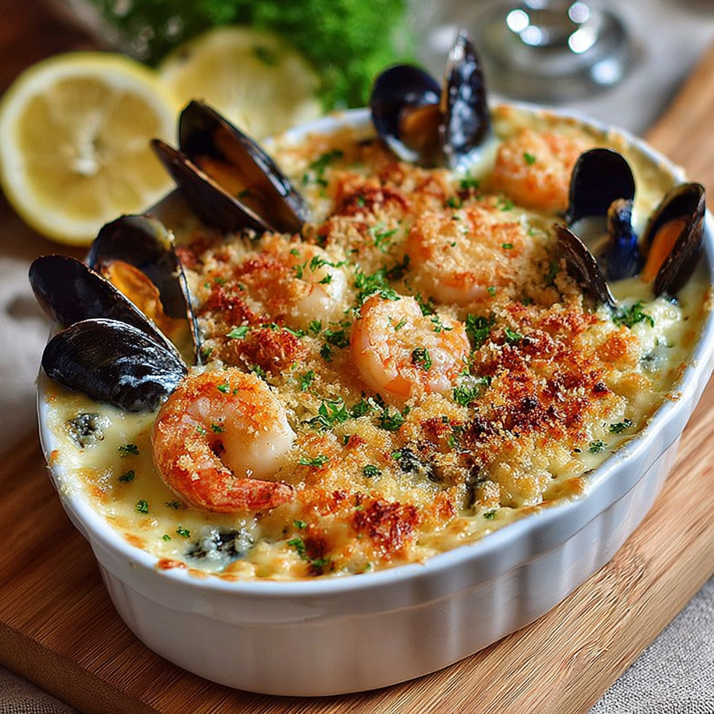 Le gratin de fruits de mer est l’un des plats les plus élégants et les plus réconfortants de la cuisine française. Il combine la finesse des produits de la mer avec la gourmandise d’une sauce onctueuse et le croustillant d’un dessus gratiné. Ce plat est souvent servi lors des repas de fête, des déjeuners du dimanche ou des grandes occasions, mais il peut aussi devenir un plat familial simple et chaleureux.