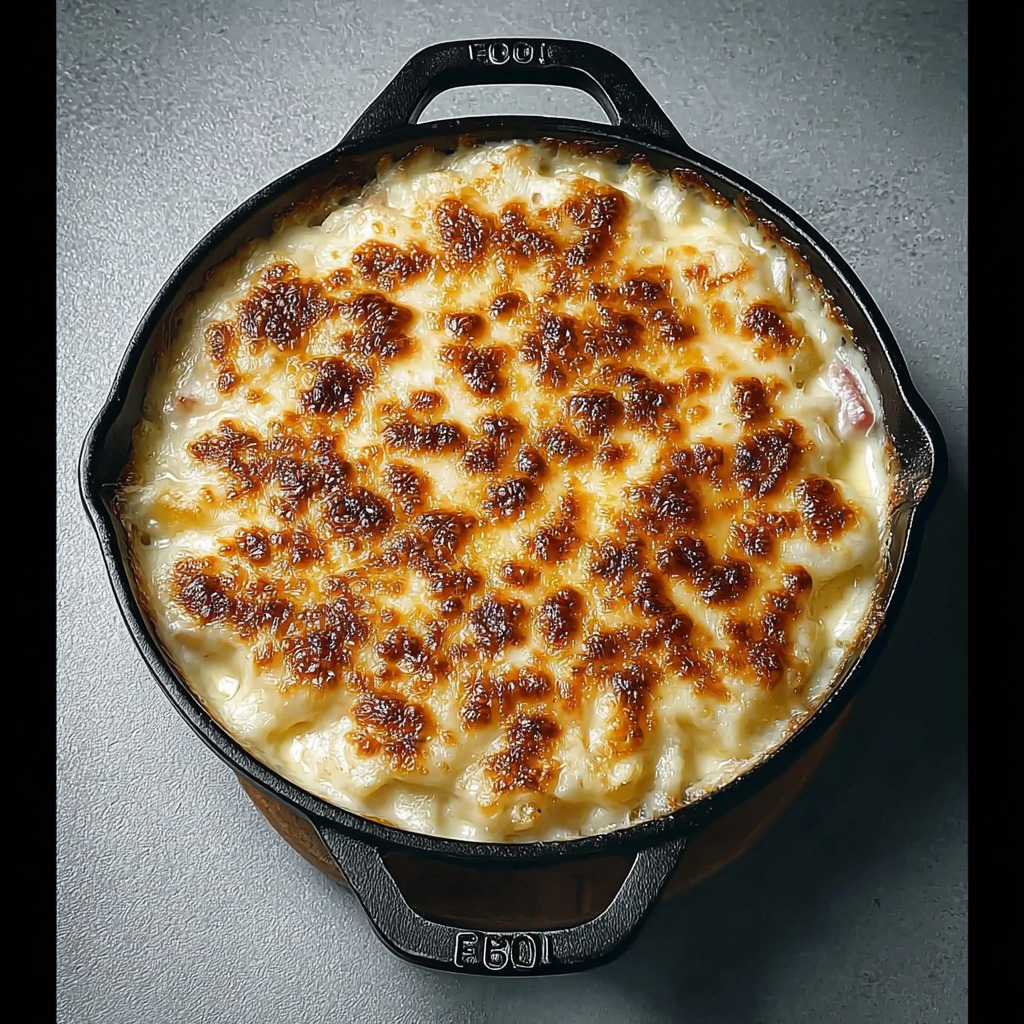 Le gratin de jambon blanc est servi bien chaud, directement dans le plat de cuisson. Il peut être parsemé de persil frais finement ciselé afin d’apporter une touche de fraîcheur et de couleur. Sa présentation simple et généreuse reflète parfaitement l’esprit de la cuisine familiale.