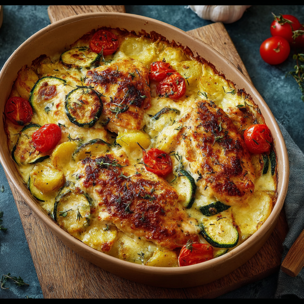 Le gratin de légumes au poulet est un plat familial, généreux et réconfortant qui plaît à tous les coups. Facile à préparer, équilibré et savoureux, il combine la tendreté du poulet avec la douceur des légumes fondants et le plaisir irrésistible d’un gratin doré au four. C’est une recette parfaite pour un déjeuner complet, un dîner léger ou même pour utiliser des restes de légumes et de poulet déjà cuits.