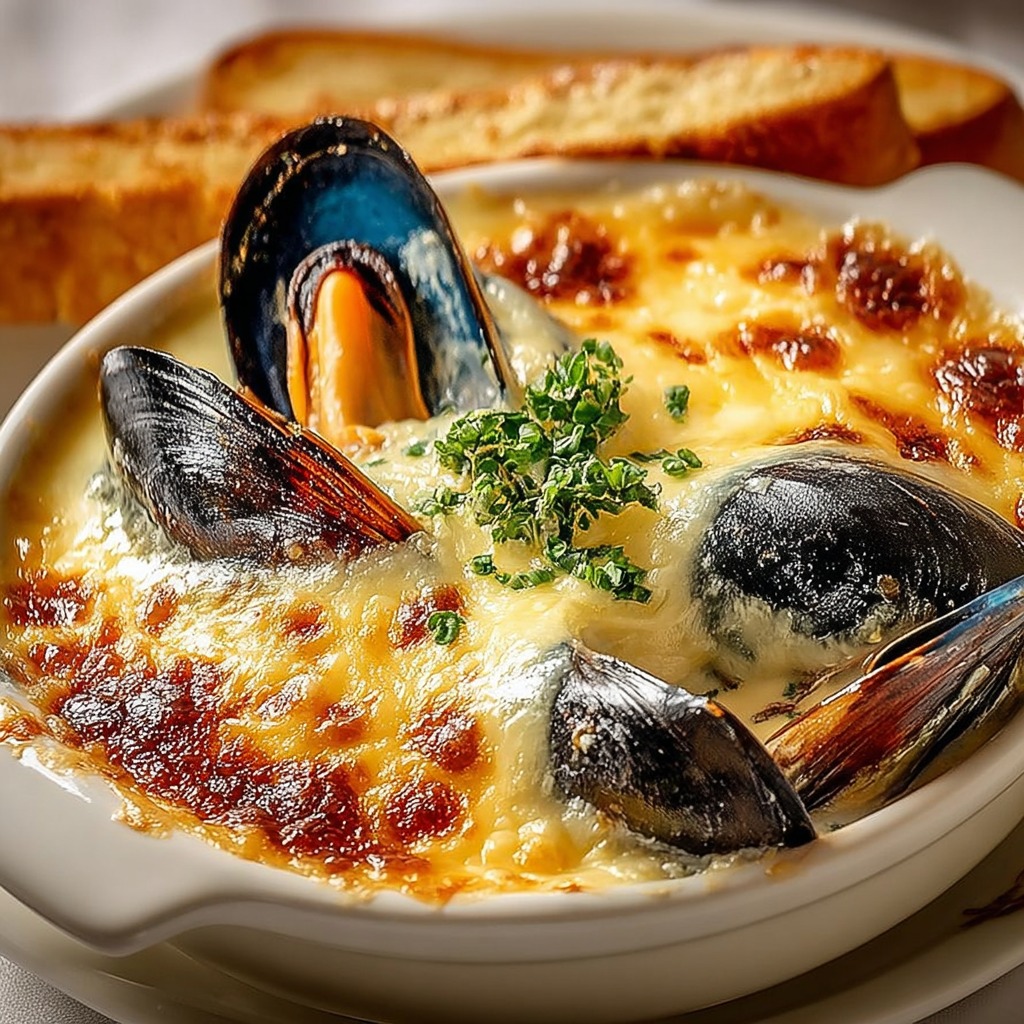 Sur le plan nutritionnel, ce plat fournit des protéines de qualité avec les moules, des lipides et de la richesse en calcium grâce au fromage et à la crème, et un peu de glucides si on l’accompagne de pain. C’est un plat complet et équilibré lorsqu’il est consommé avec modération et accompagné d’un légume ou d’une salade.
